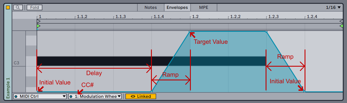 Aimed to change the modulation wheel (cc#1) automatically for plugins or external instruments that don't have vibrato with delay, unlike Live's built-in instruments.