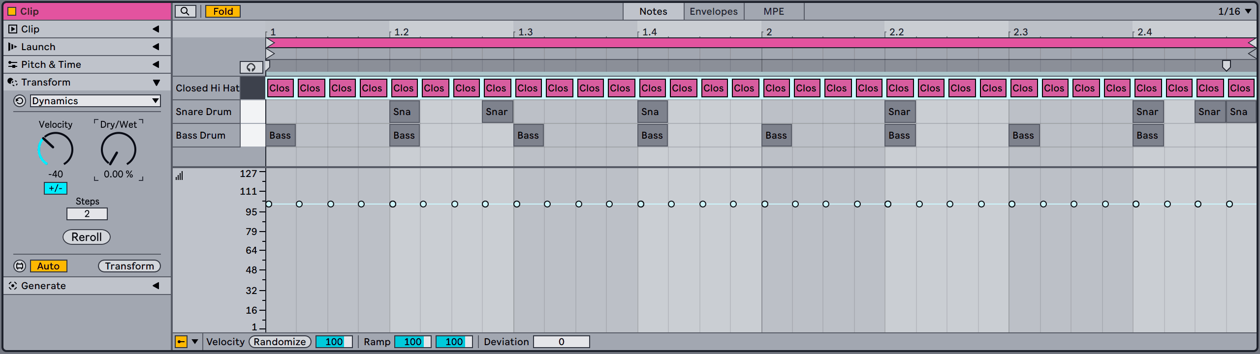 Adjusts the velocity with steps in MIDI clips and brings dynamics to your melody and rhythm.